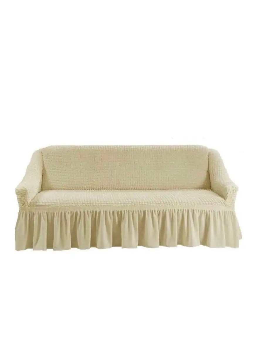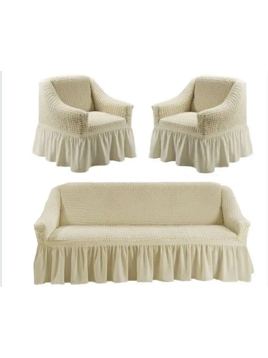 Комплект чехлов на диван и 2 кресла с оборкой, стрейч, бежевый