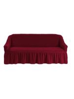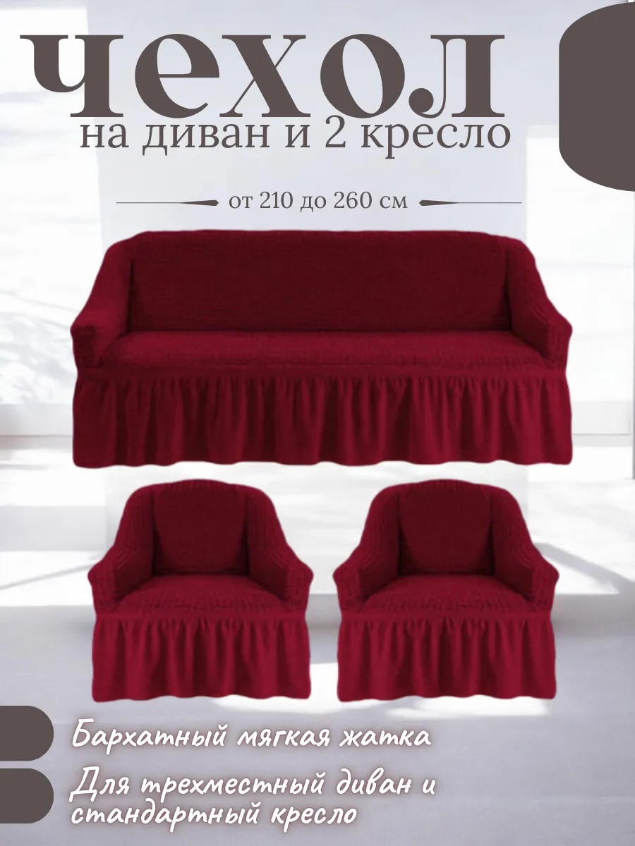 Комплект чехлов на диван и 2 кресла с оборкой, стрейч, бордовый