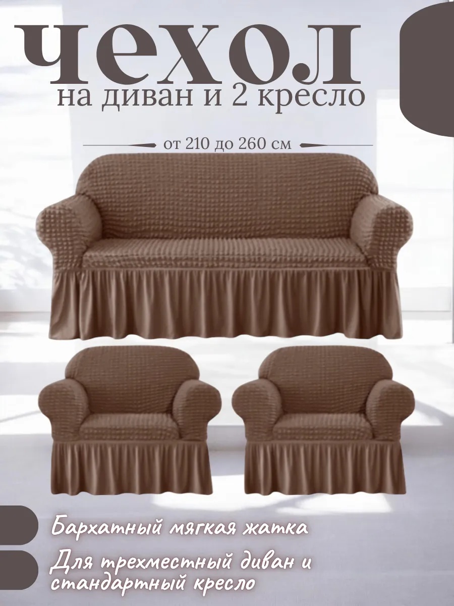 • Комплектация: 1 чехол для дивана + 2 чехла на кресла