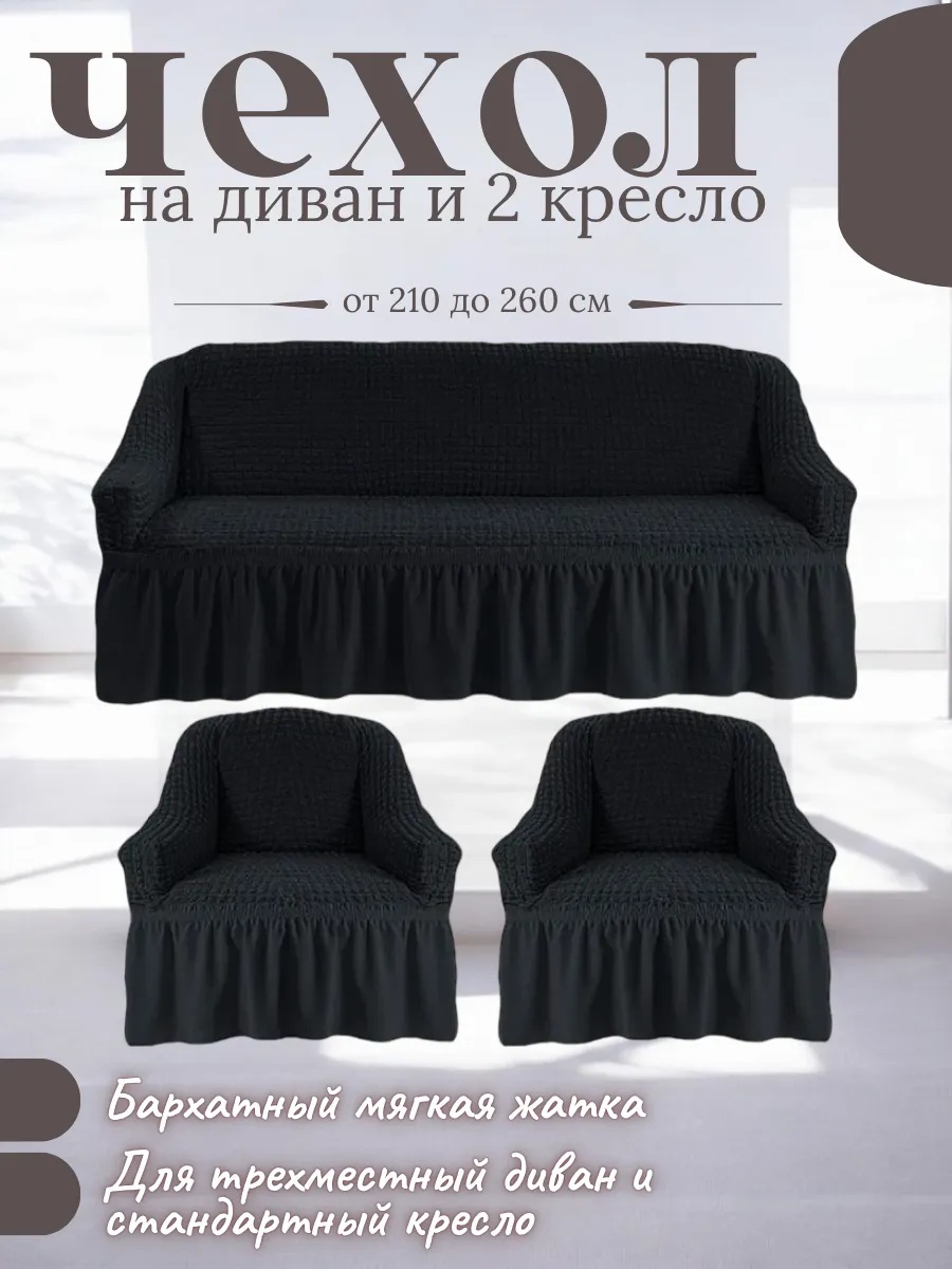• Комплектация: 1 чехол для дивана + 2 чехла на кресла