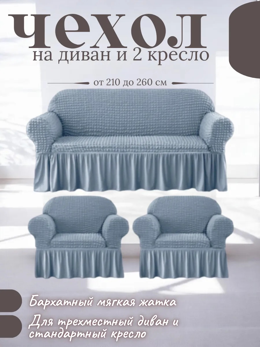 • Комплектация: 1 чехол для дивана + 2 чехла на кресла