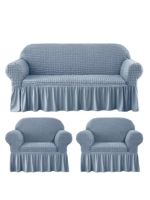 Комплект чехлов на диван и 2 кресла с оборкой, стрейч, небесно-голубой