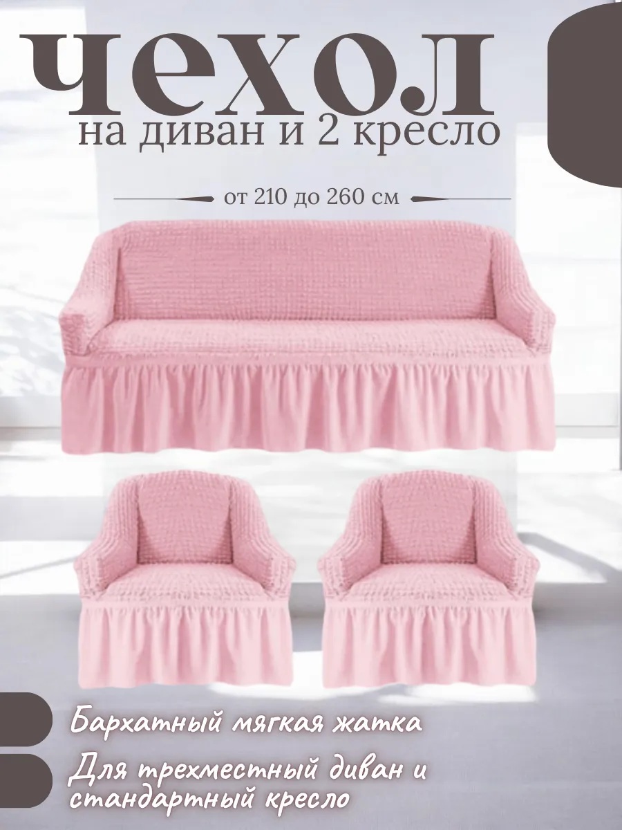 • Комплектация: 1 чехол для дивана + 2 чехла на кресла