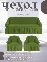 Комплект чехлов на диван и 2 кресла с оборкой, стрейч, зелёный
