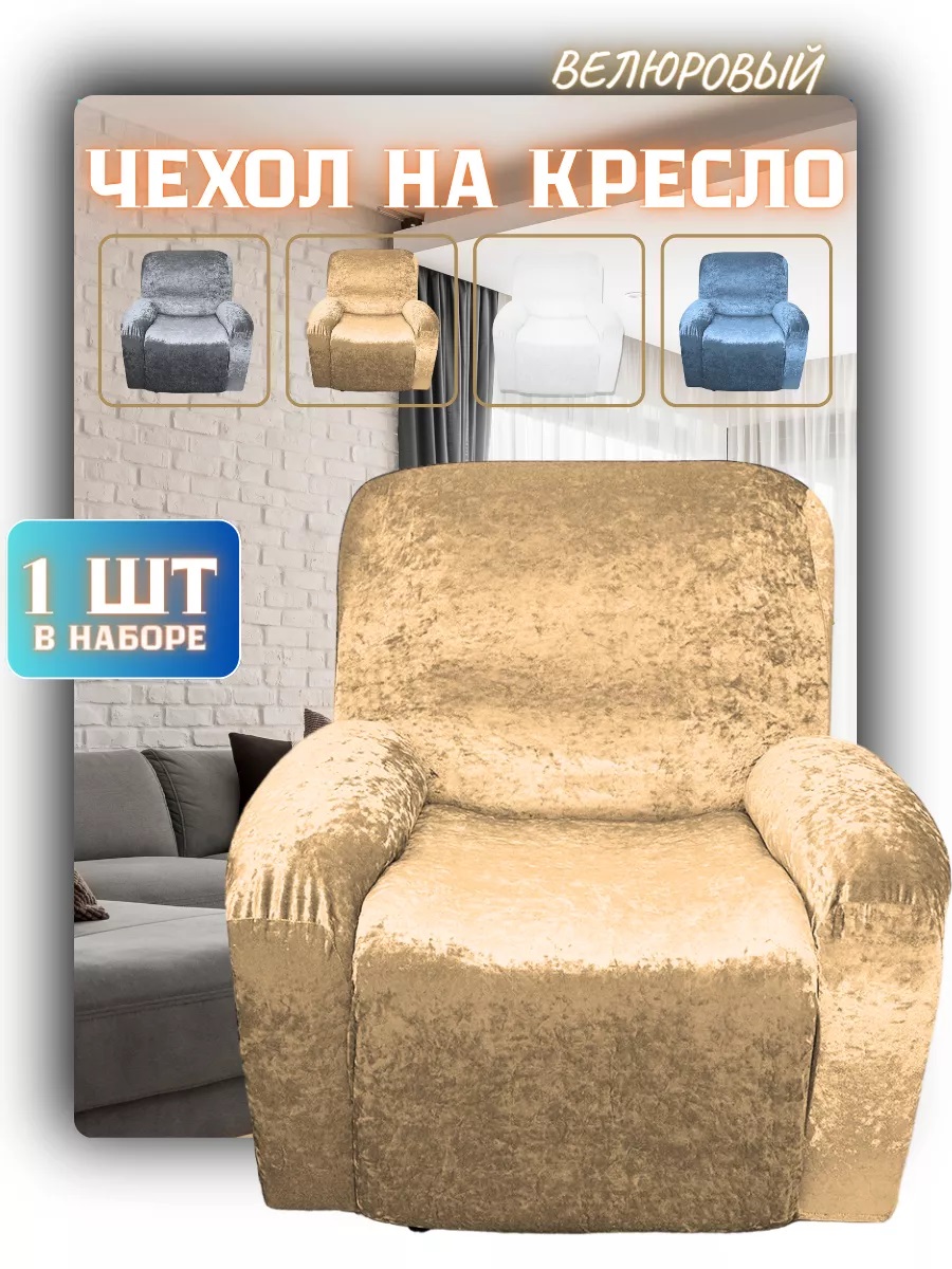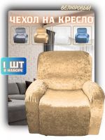 Чехол на кресло без оборки 1 шт. Бархатный велюр ,медово-бежевый