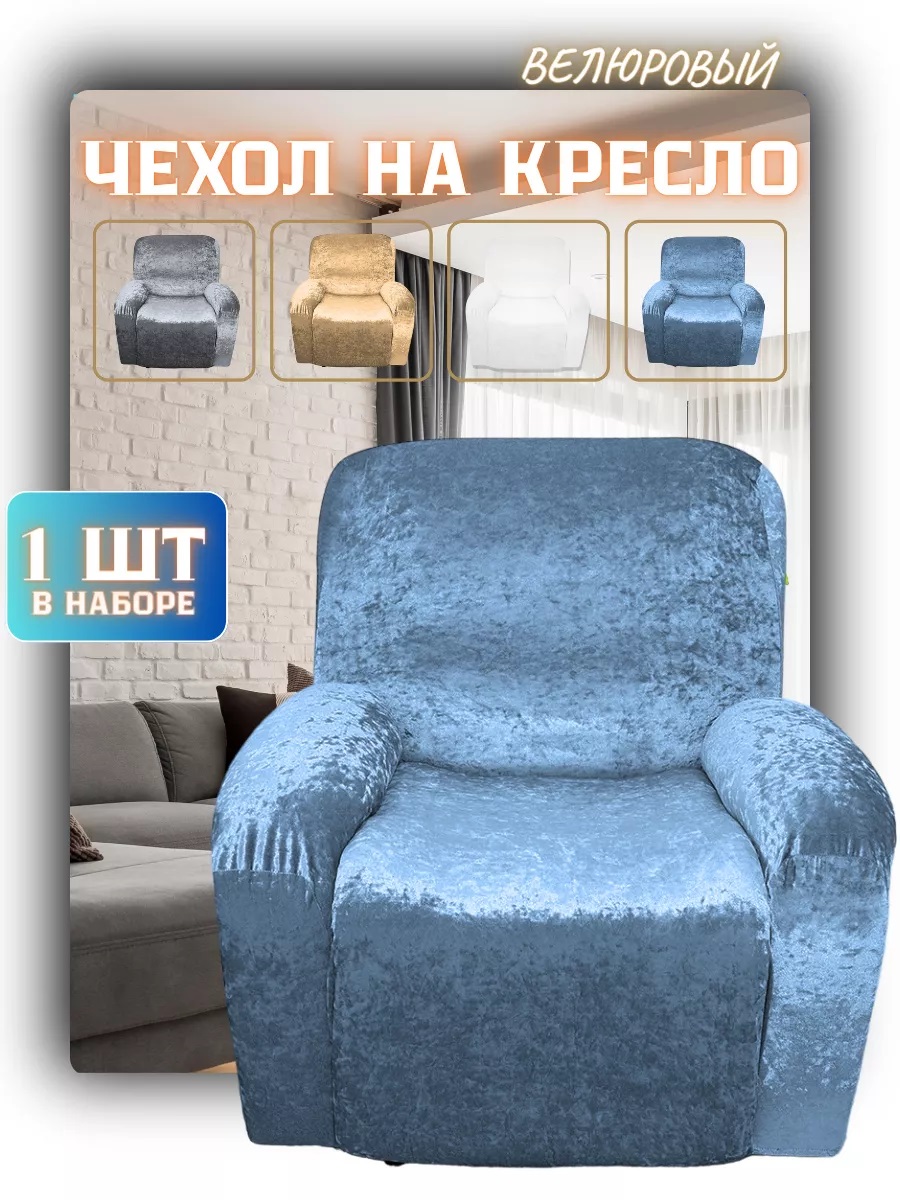 Чехол на кресло без оборки 1 шт. Бархатный велюр ,синий