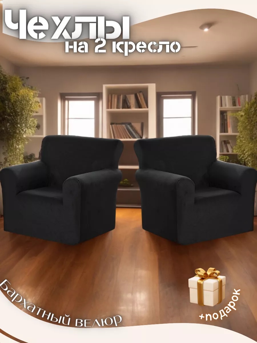 Чехлы на 2 кресла без оборки ,Бархатный велюр(Мех} ,черный