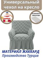 Чехол на кресло с оборкой 1 шт Жаккард., серый