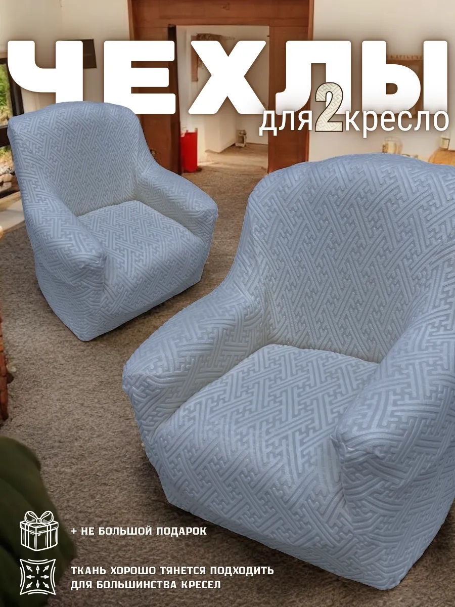 Чехлы на 2 кресла без оборки Бархатный Жаккард,мокрый асфальт