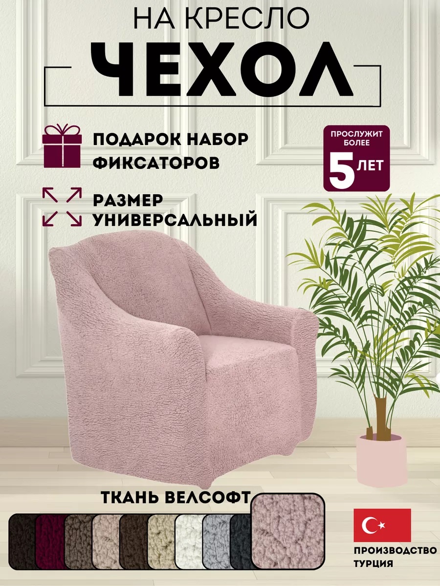 Чехол на кресло без оборки 1 шт. Меховой, пудровый