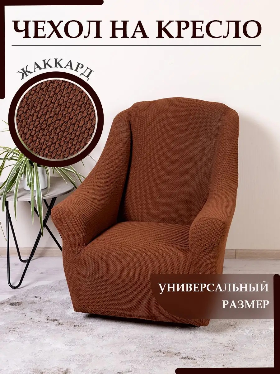 Чехол на кресло без оборки 1 шт. Жаккард , шоколадный