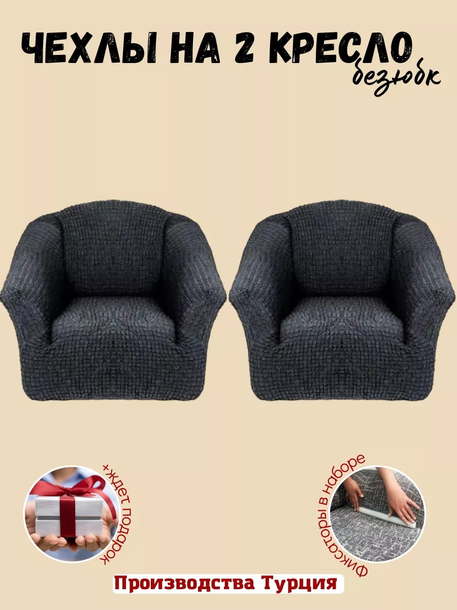 Чехлы на 2 кресла без оборки ,мокрый асфальт