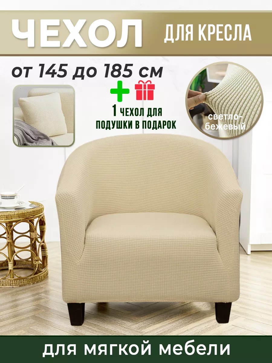 Чехол на кресло без оборки 1 шт. Велюр,светло-бежевый