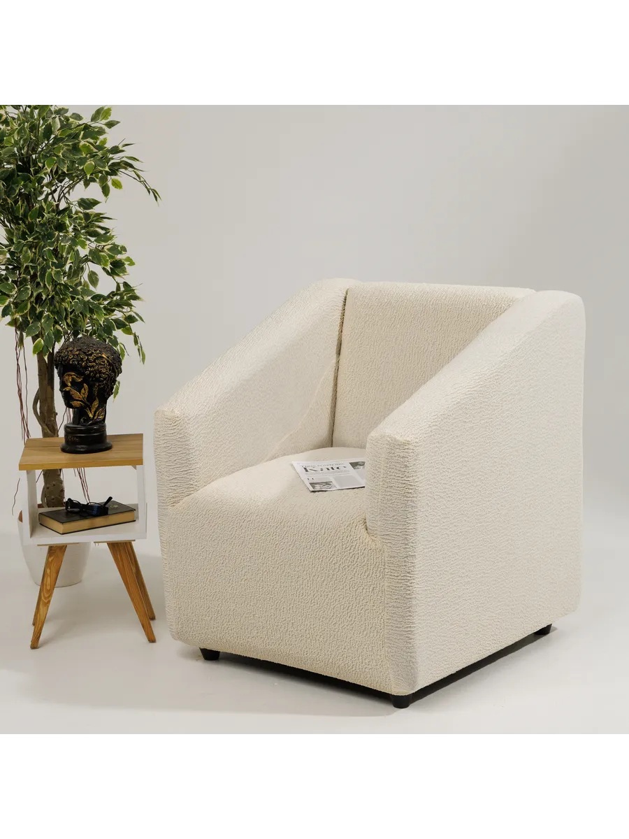 Чехол на кресло без оборки 1 шт. Шёлковый Жаккард ,молочный