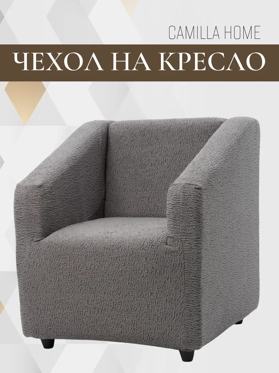 Чехол на кресло без оборки 1 шт. Шёлковый Жаккард ,антрацитовый