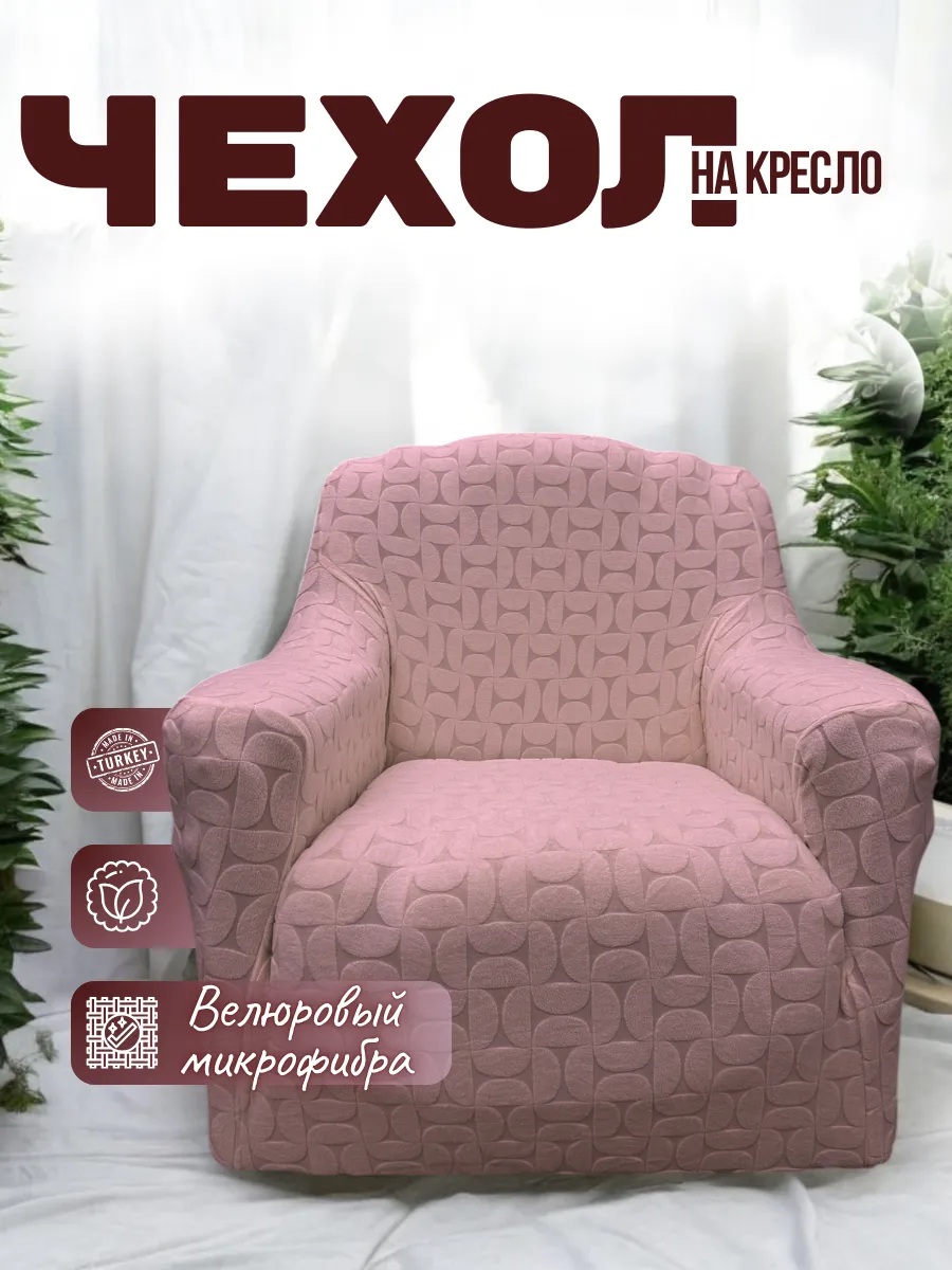Чехол на кресло без оборки 1 шт. Бархатный Жаккард , розовый персик