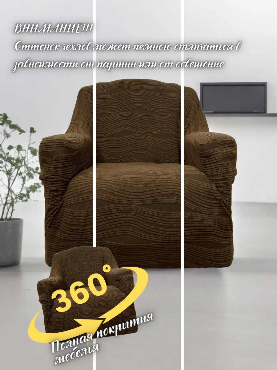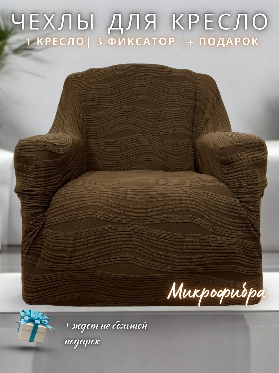 Чехол на кресло без оборки 1 шт. Жаккард ,шоколадный