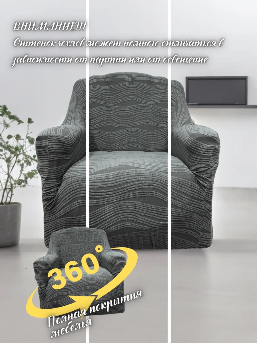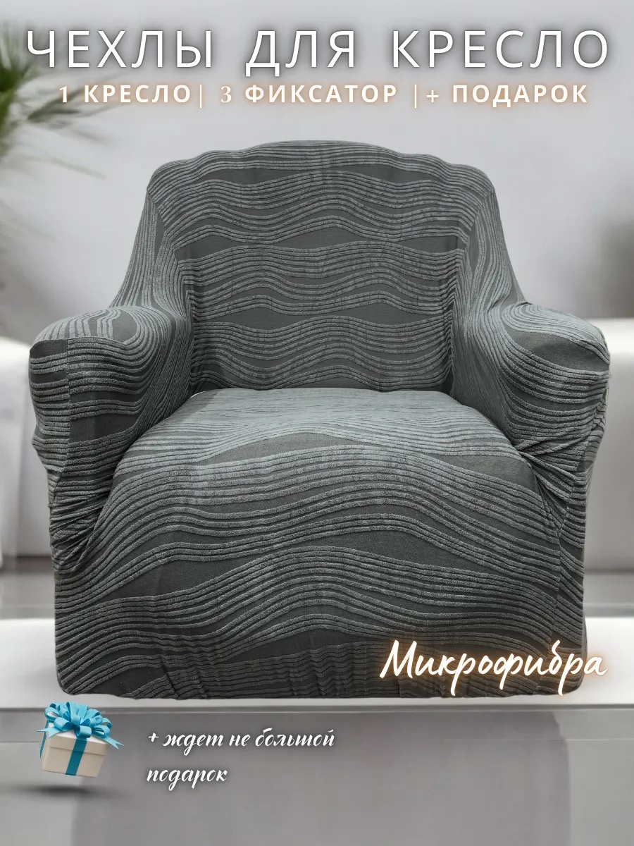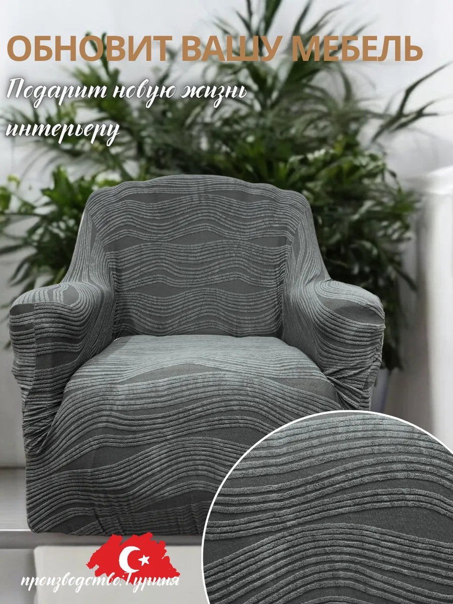 Чехол на кресло без оборки 1 шт. Жаккард ,средне-серый