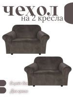 Чехлы на 2 кресла без оборки Бархатный Велюр,темный горький шоколад