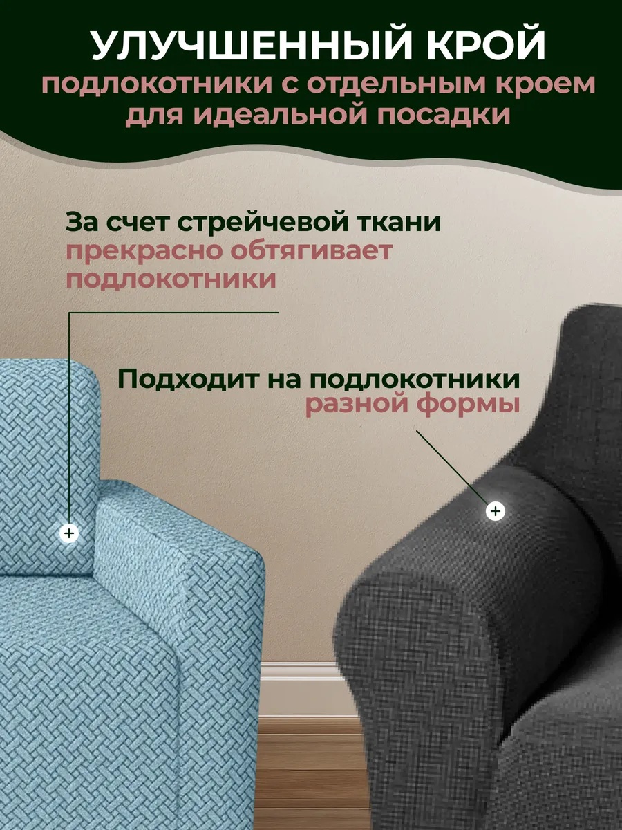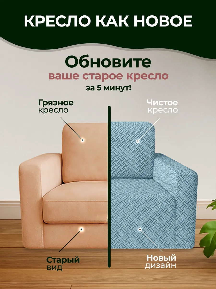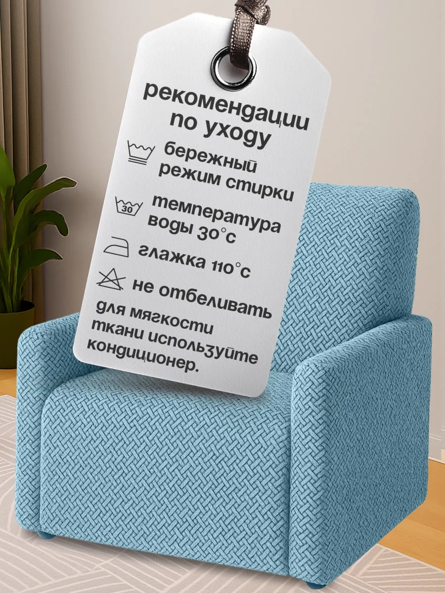 Чехол на кресло без оборки 1 шт. Бархатный Жаккард ,голубой