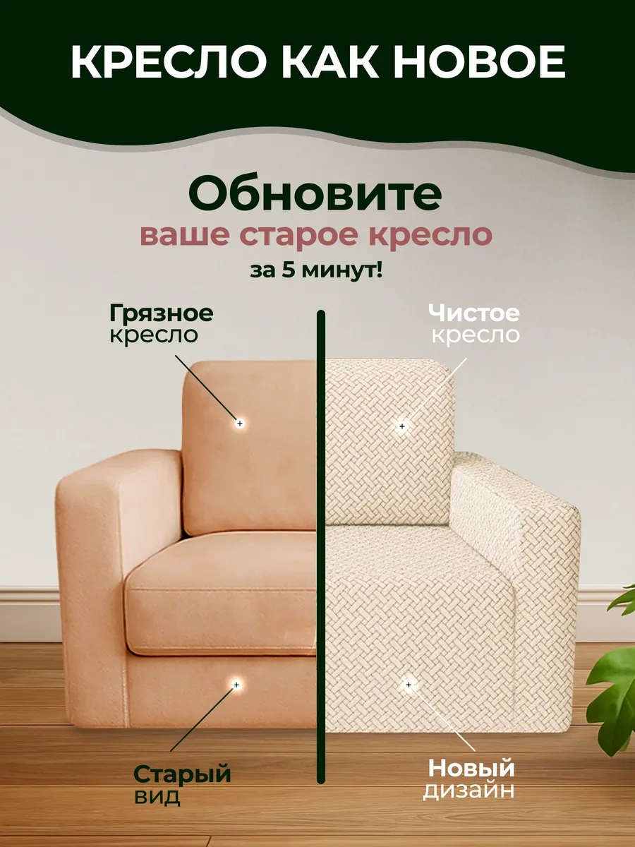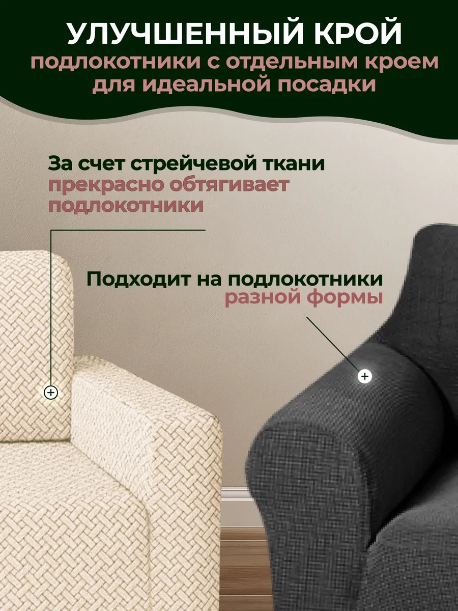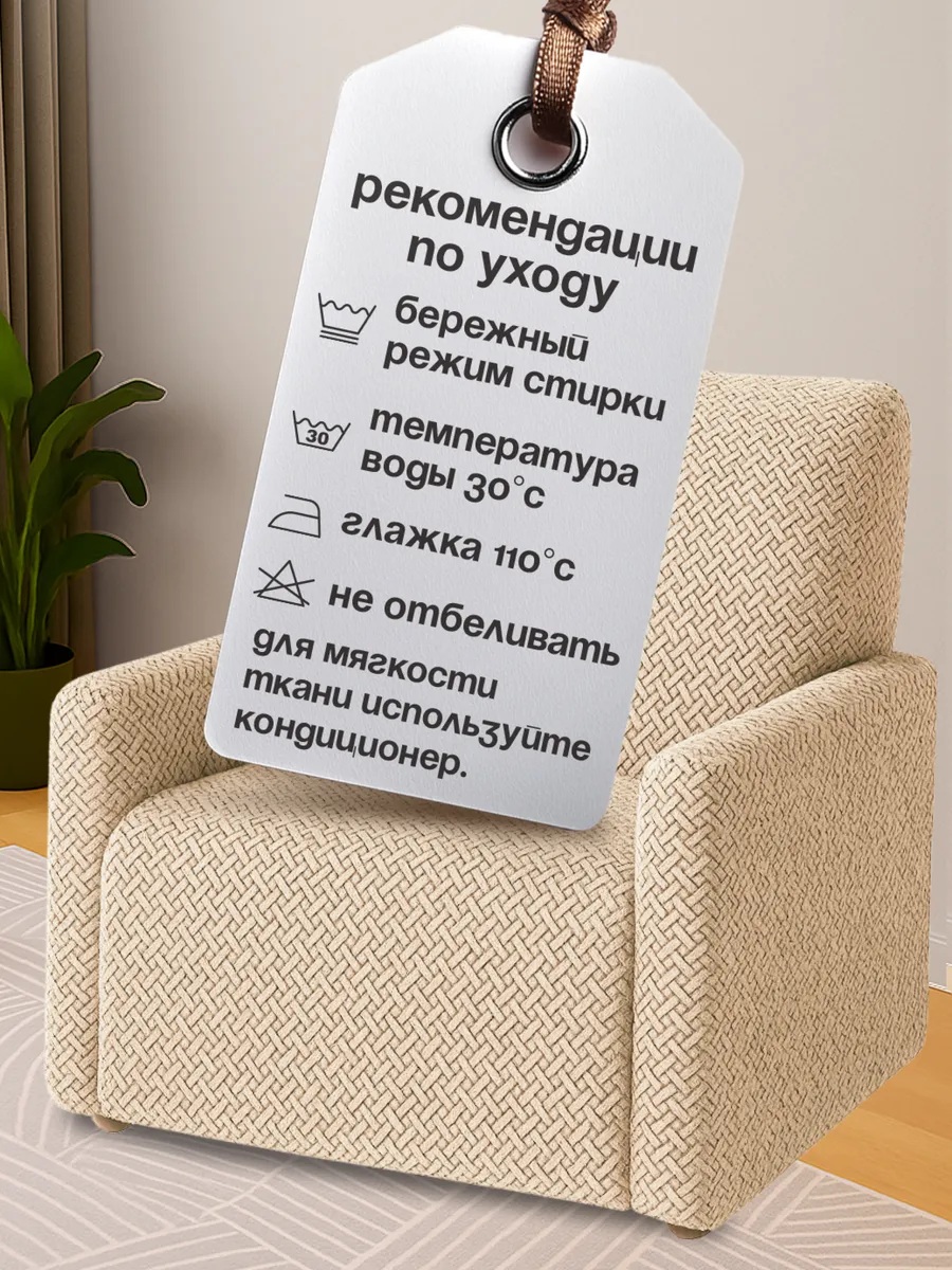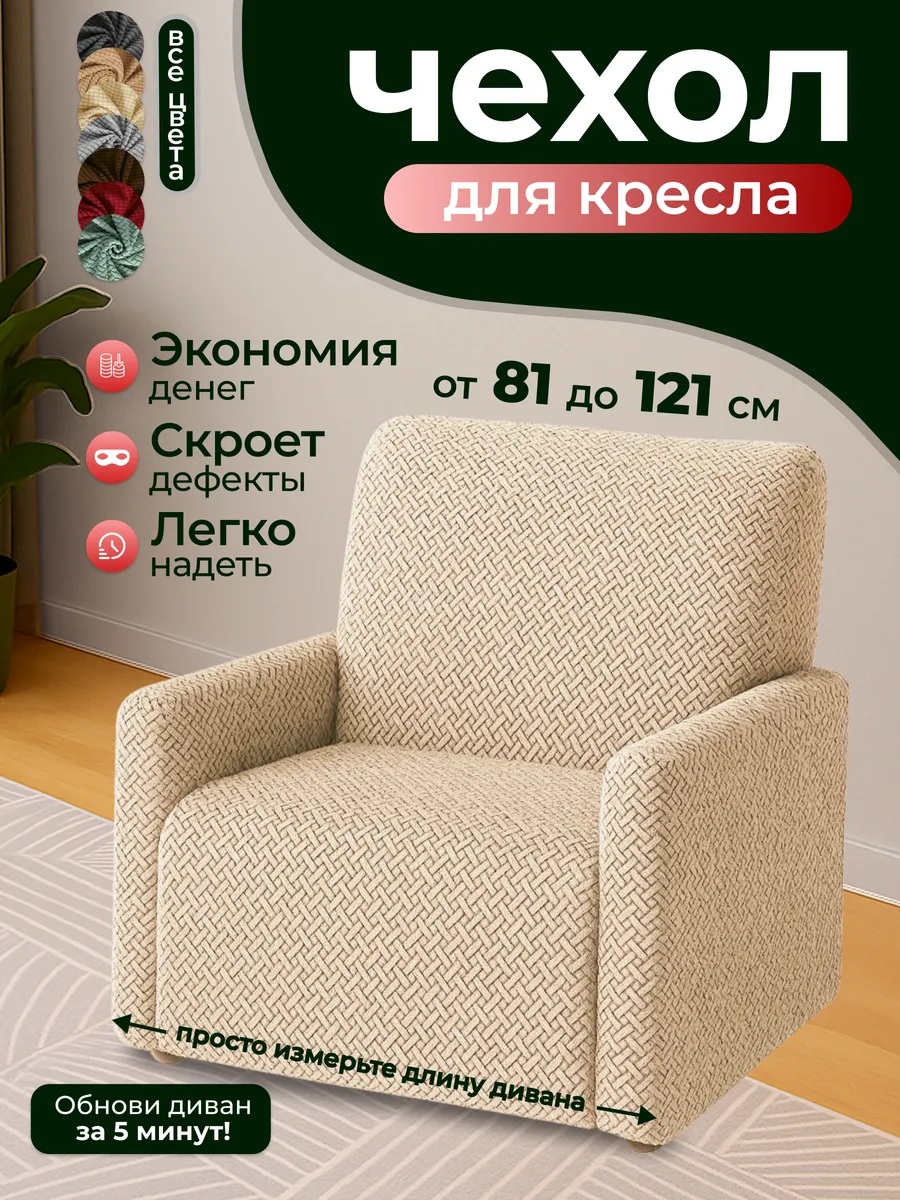 Чехол на кресло без оборки 1 шт. Бархатный Жаккард ,бежевый