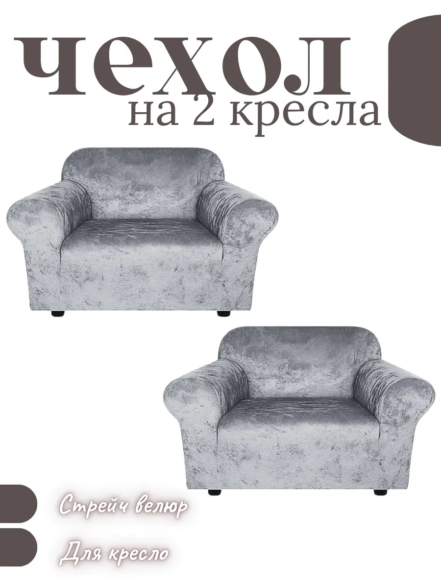 Чехлы на 2 кресла без оборки Бархатный Велюр,средне-серый