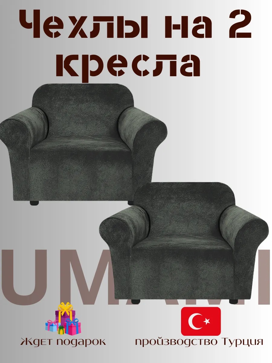 Чехлы на 2 кресла без оборки Бархатный Велюр,мокрый асфальт