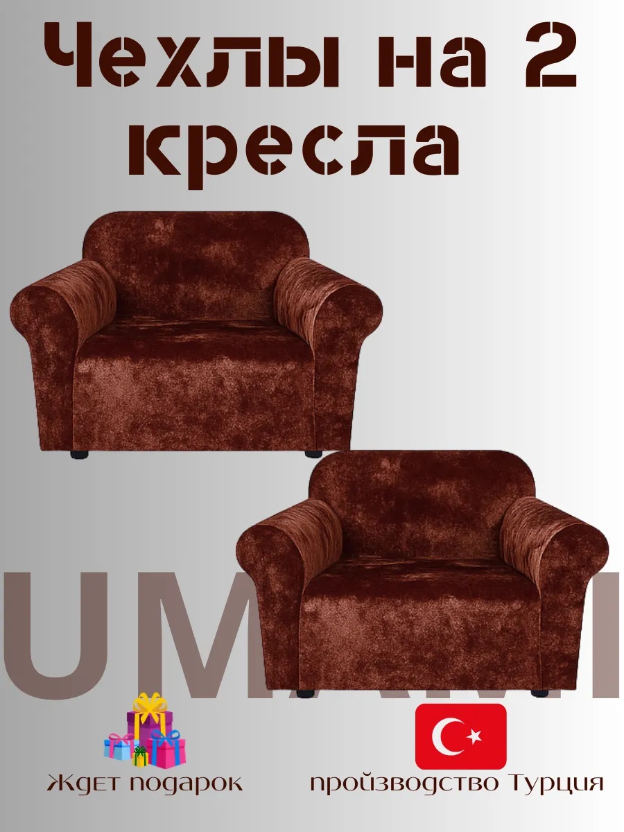 Чехлы на 2 кресла без оборки Бархатный Велюр,шоколадный